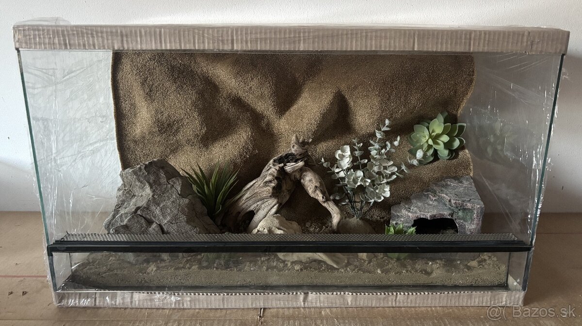 Predám nové terárium s rozmermi DxŠxV 70x40x40. Terárium je vyhotovené zo 4mm skla, má dvojité vetranie a vpredu posuvné dvierka. Súčasťou je členitá 3D stena. Cena za terárium je 110 eur. Na výber je z viacero kusov. Dovoz možný takmer po celom Slovensku. Pozri aj ostatné moje inzeráty.