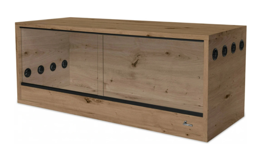 Vybavené 8 vetracími otvormi s priemerom 40 mm a dvojicou posuvných sklenených dvierok. Vhodné pre agamy, hady, suchozemské korytnačky atď. Hrúbka dosiek je 18 mm poskytuje vynikajúcu tepelnú izoláciu a udržiava požadovanú teplotu s nízkym príkonom. Jednoduché upevnenie ťažšieho zariadenia alebo dekorácií na steny terária.