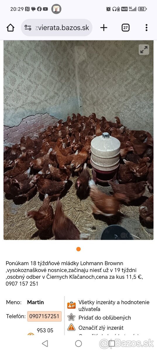 Ponúkam 18 týždňové nosnice Lohmann Brownn,vysokoznaškové mládky,prvoročná znaška cca 300 vajíčok,osobný odber Čierne Kľačany.