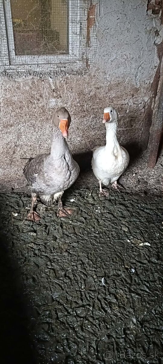 Predám párku husy 60 € za obe ! Vlani vychovali 11 mladých. Biela je hus a šedý gunár .