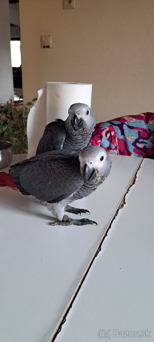 Ponúkam na predaj mláďatá papagája sivého žako kongo samicu a samca, odber v polovičke marca, narodené na Vianoce, ručne dokrmované,papiere Cites, PBFD negatív.