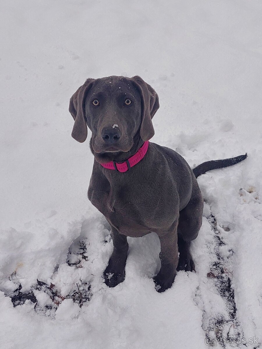 S ťažkým srdcom, darujem fenku weimarskeho stavača modro šedej farby. 15.7. bude mať 2 roky, ale stále je to povahou šteňa. Miluje deti a ľudí, vychádza aj s inými psami. Vychovávaná bola vonku, takže nie je vhodná do bytu. Potrebuje veľa pohybu a aktivít.