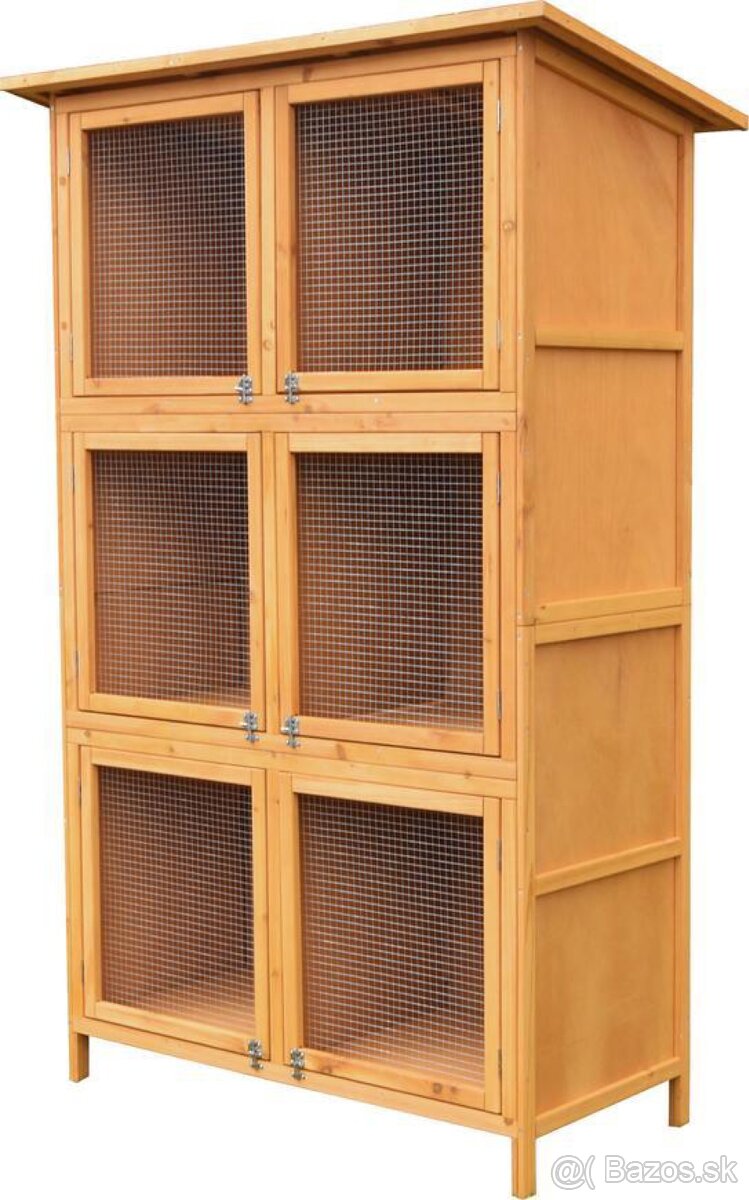 Králikáreň je praktická viacpodlažná drevená klietka určená na chov králikov a iných drobných zvierat. Vďaka svojej výške a členeniu do viacerých samostatných boxov poskytuje dostatok priestoru a prehľadnú organizáciu chovu.