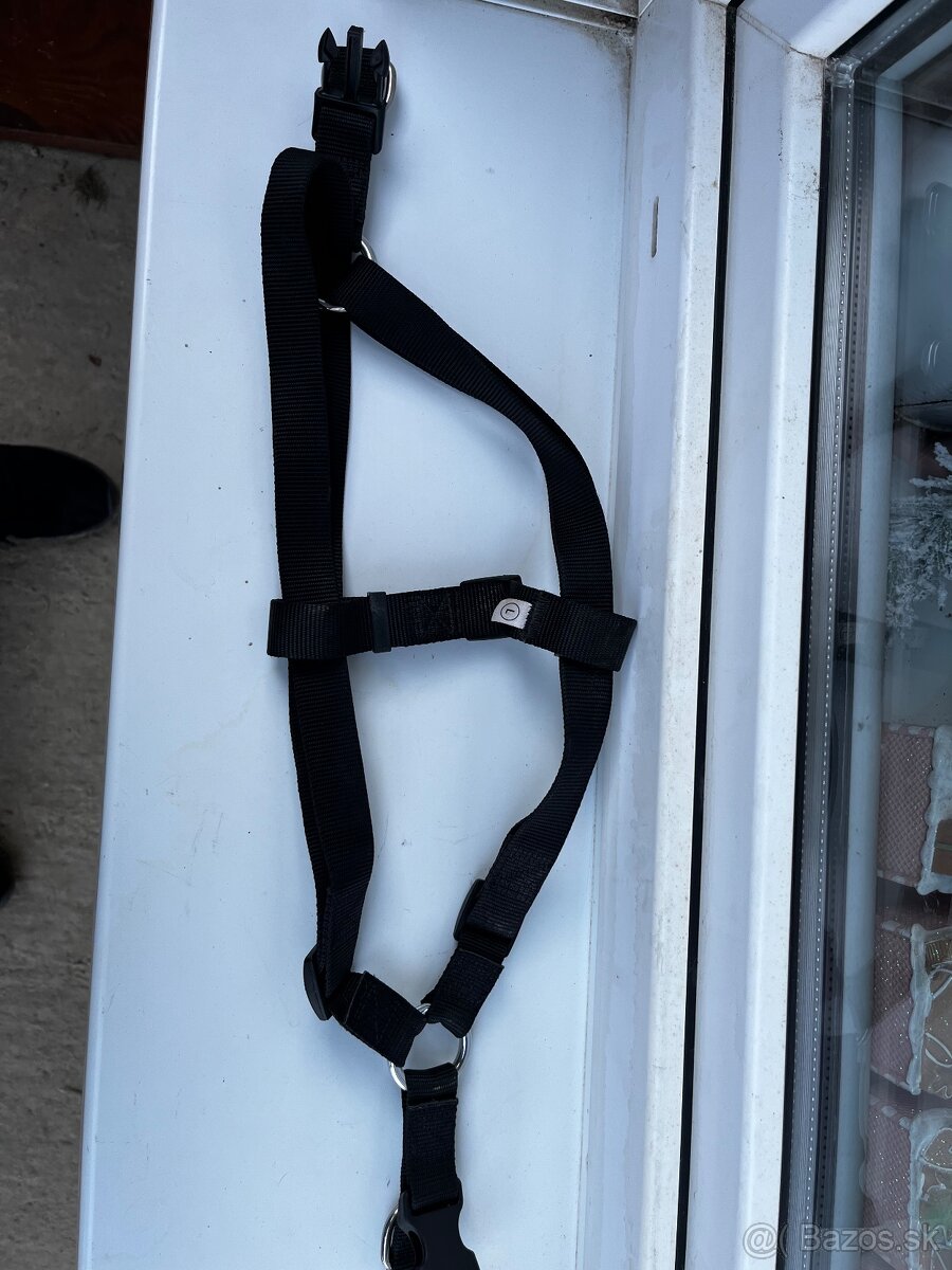 5. Postroj M - čierny s bezpečnostnymi zámkami na oboch stranách, malo používaný, pôvodná cena 29,99€, značka Trixie; 8€