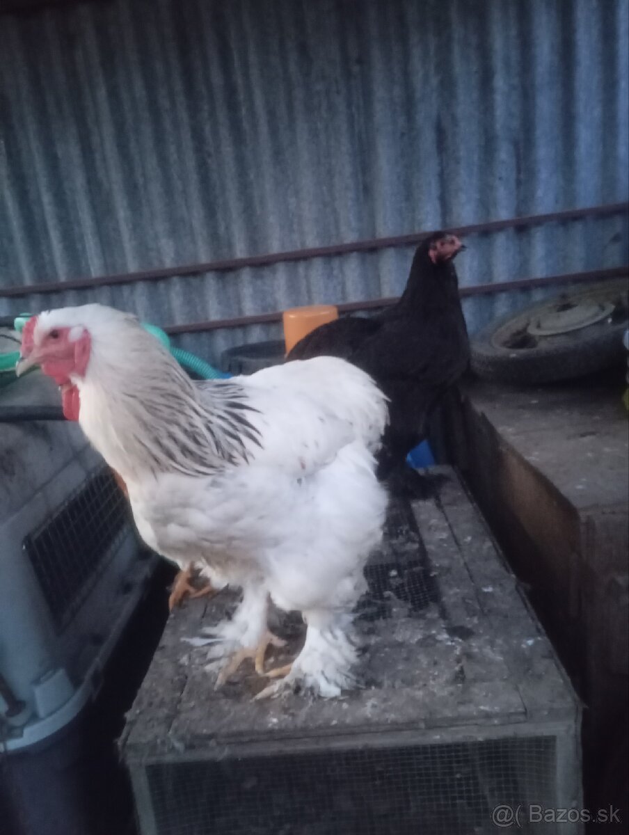 Predám Brahmanky kohút biely a sliepka čierna 30€ kus, prezimované.