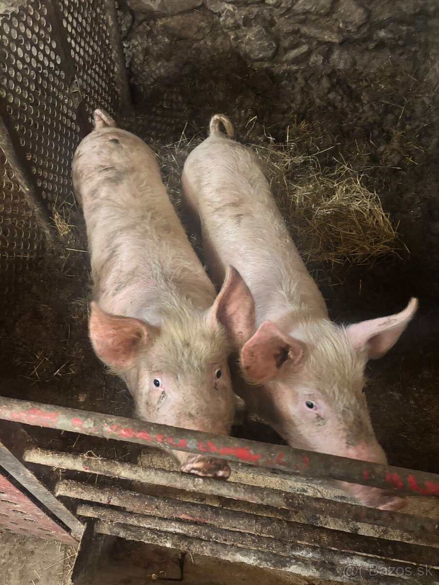 Predám 2 ošípané s váhou cca 100kg. Sú to krížence landras a pietrain, pekne a rýchlo naberajú.