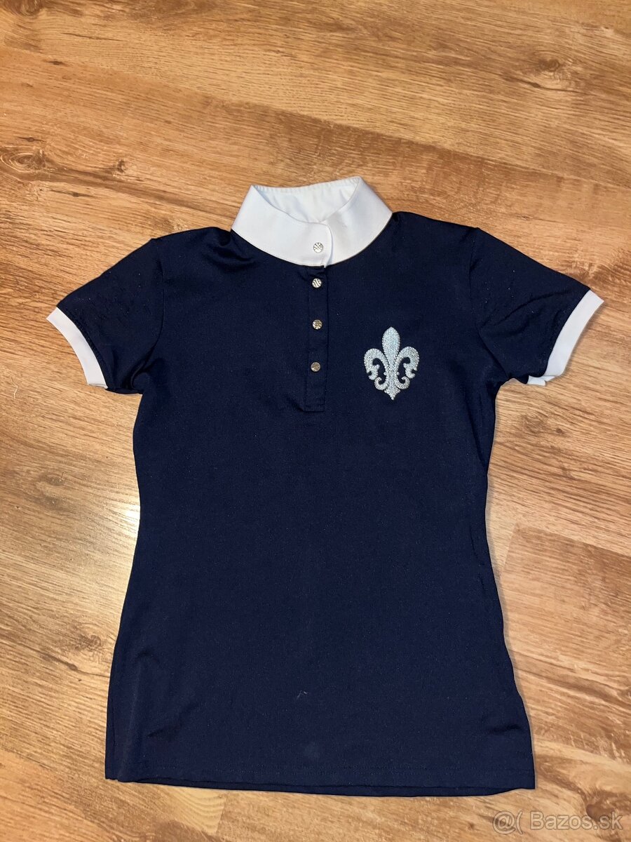 Jazdecké tričko Tmavomodro-biele veľ. S krásne detaily na rukávoch trošku žmolky inak super stav
