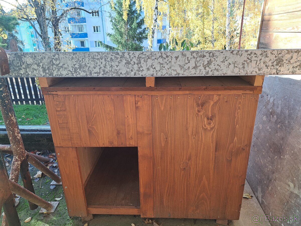 Rozmer 143×80×80 cm, zateplená 4 cm polystyrénom, z vnútra aj zvonka tatranský profil, odnímateľná strecha, párkrát použitá. Vhodná na celoročné vonkajšie použitie.