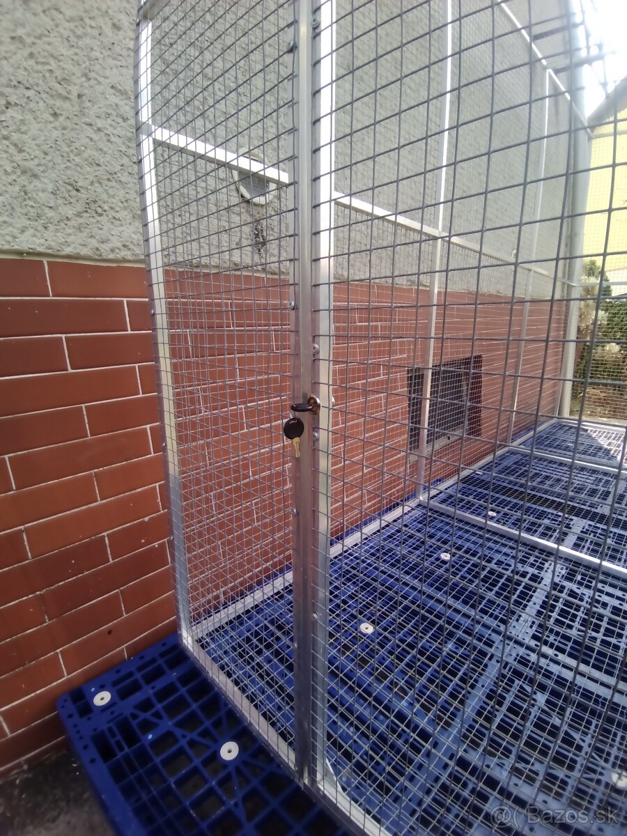 Predám ako novú nevyužívanú hliníkovú volieru s výsuvným pultom na 3 misky s uzamykateľným vstupom s rozmermi 3m x 2m x 1m. Konštrukcia je z hliníkových profilou 20mm x 20mm, pletivo je zvarane 1,8mm, 25mm x 25mm.