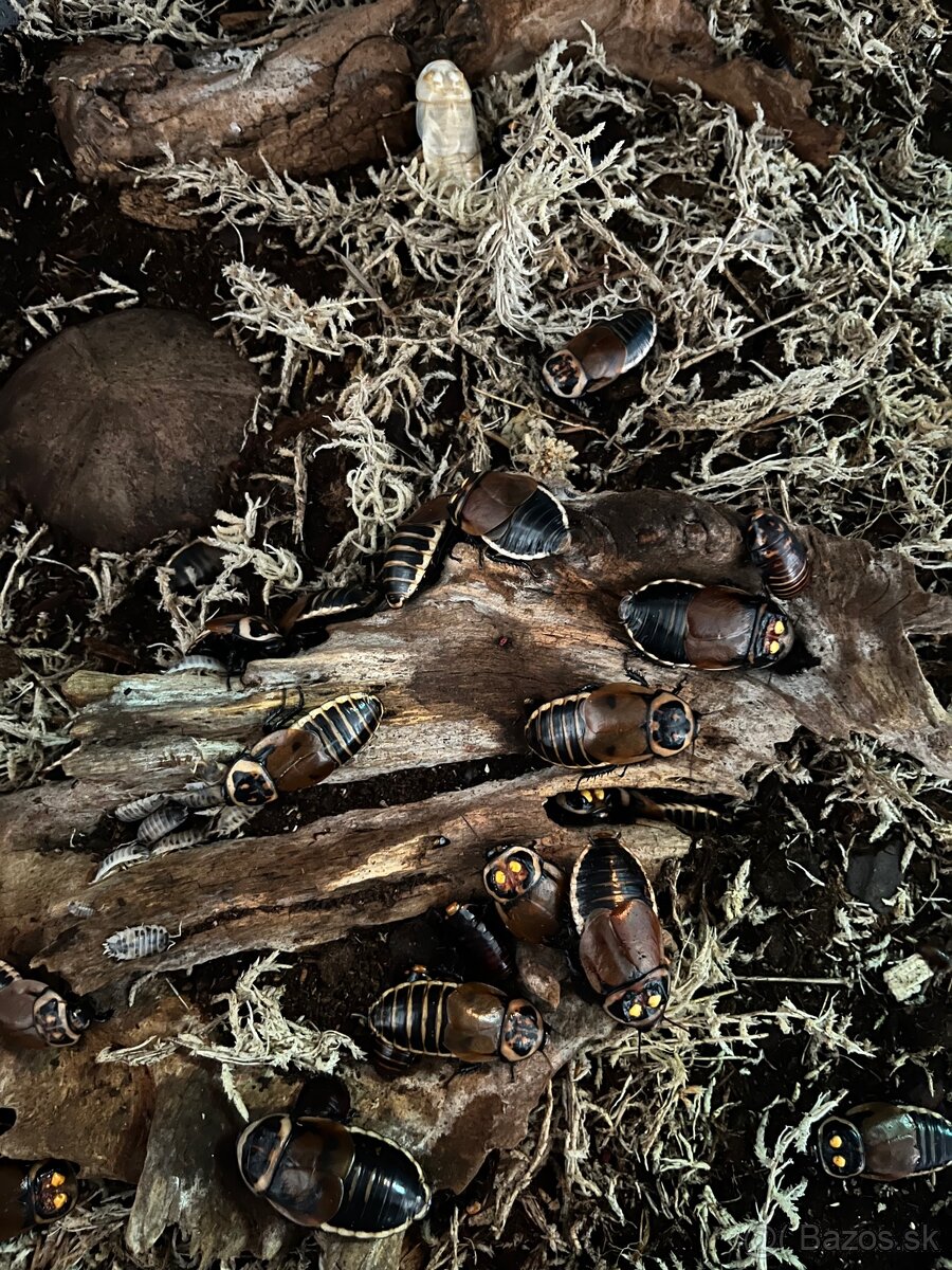 Mám nadbytok švábov Lucihormetica verrucosa. Ide o nenáročný druh švába vhodný aj pre začiatočníkov. Chovať ich odporúčam v boxe s lesnou hrabankou či rašelinou. Pridať môžete rašeliník, suché lístie či drobné vetvičky. Ako úkryt im postačí drevo či korková kôra. Kŕmiť ich môžete ovocím či zeleninou prípadne môžete vyskúšať rôzne krmivo pre ryby (dafnie, gammarus a podobne). Nepohrdnú ani suchým krmivom pre psy či mačky. Viac informácii poskytnem v maili, v správe alebo na IG (@sz.reptiles). Preferujem osobný odber v Cíferi prípadne po dohode v Trnave alebo Piešťanoch.