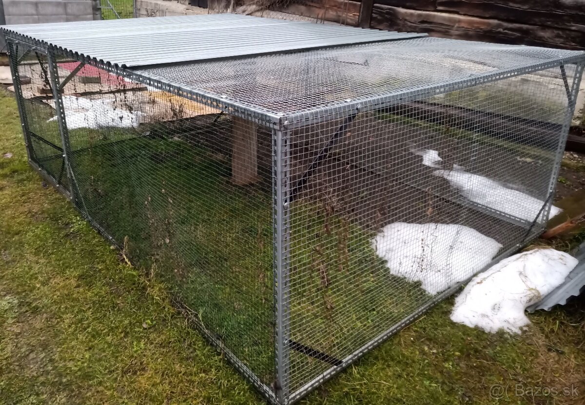 Predám kovovú klietku, výbeh s dvierkami pre sliepky, kurčatá, kačky, husi. Rozmer d x š x v 300x200x100 cm z kovových L profilov, ktoré sú šrobované. Pletivo štvorec 19x19 mm pozinkované a aj 19x19 mm poplastované. Cena 260 € príp. dohoda.