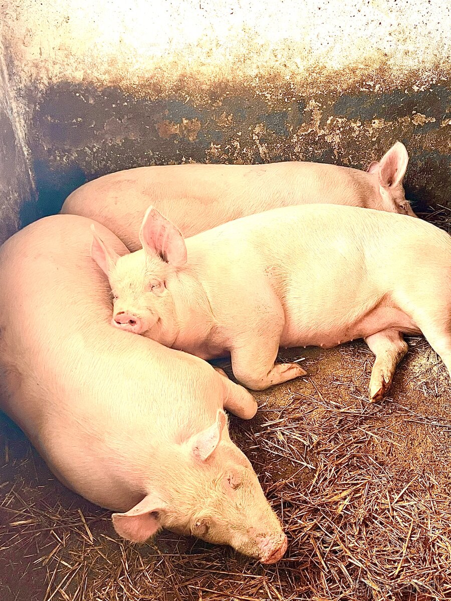 Krížené masové plemena ako Yorkshire x Landras, dosahujú aj krásnu slaninku, 120-170kg