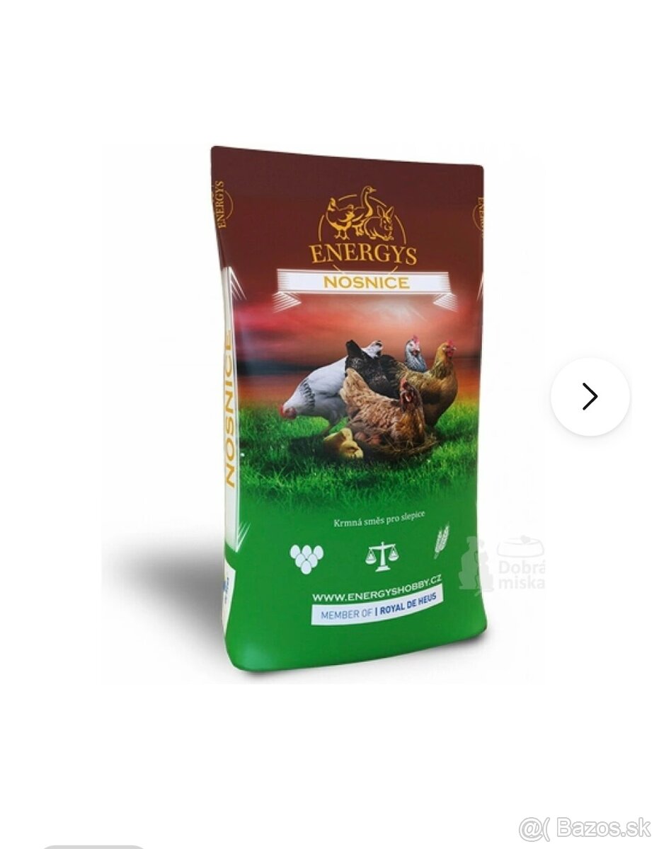 Krmna zmes pre nosnice - [25.2. 2026]Predám krmnu zmes pre mladky,nosnice, zloženie: pšenica, kukurica,hrach, extrahovana sója, kŕmne vápno,zmes vitamínov a minerálov, cena 14€/25kg