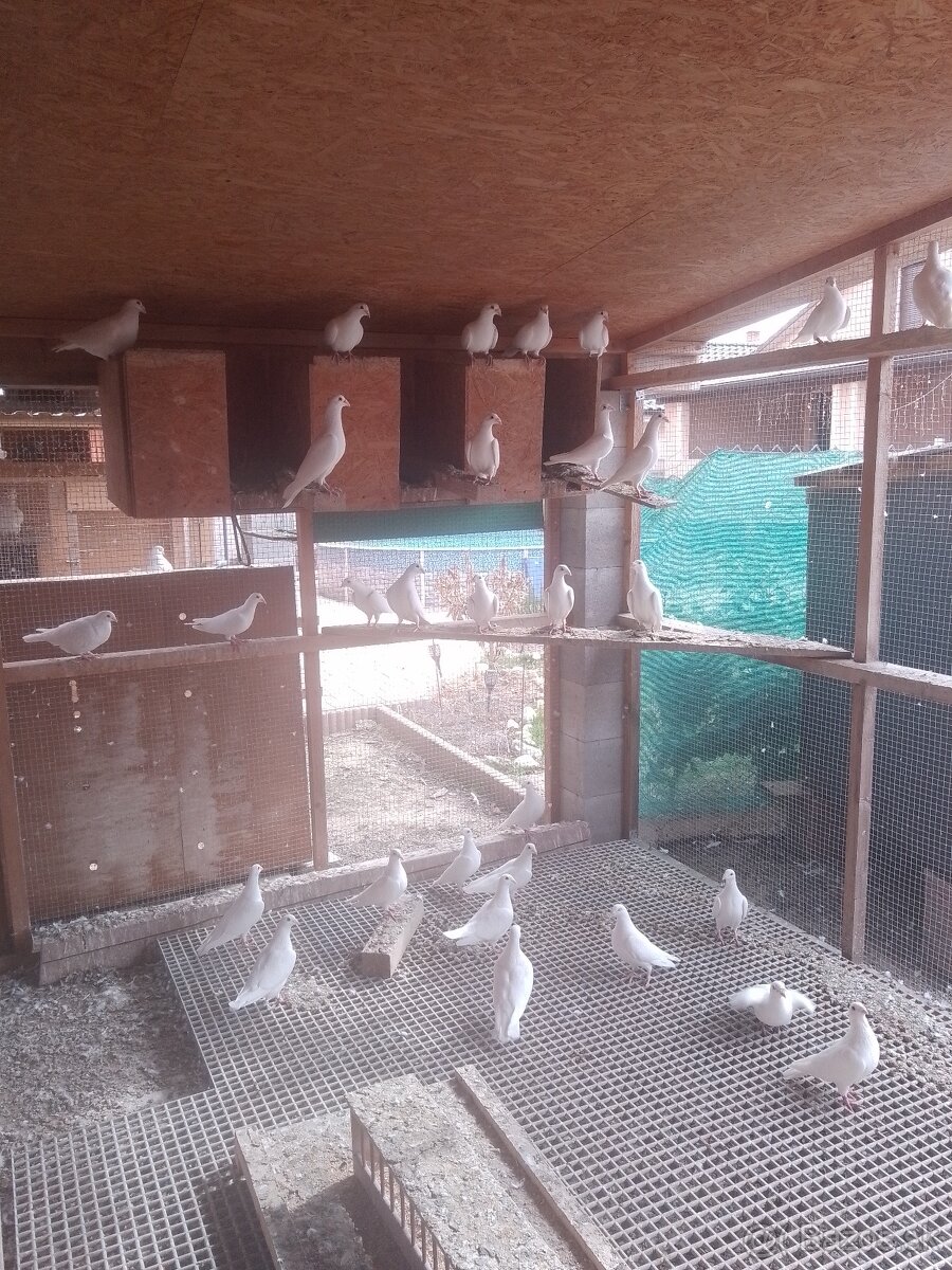 Predám 5 kusov samíc bielych poštových holubov. 1 kus 10€, všetky 5 kusov 40€.