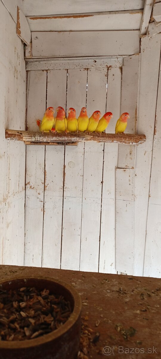 predám agspornis ruzovohrdly lutino opalin ročník 25 kruzkovane preliecene cena 20 euro za kus.