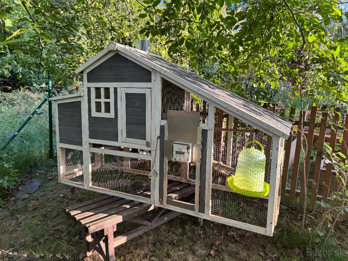 Ponúkam na predaj zánovný kurník pre 4 sliepky,je pol roka starý plne funkčný a bez poškodenia. Má z oboch dorábané dvierka pre ľahsie čistenie a manipuláciu. Predáva sa tak ako je na fotkách čiže zo všetkým príslušenstvom ako je dávkovač na vodu,dávkovač na krmivo a madlo na čistenie. Kurin má namontované spoľahlivé automatické dvierka s nastaviteľným časovačom ktoré samotné stáli 190€ a sú zahrnuté v celkovej cene. Rozmery (DxŠxV) 185x62x115 cm. V prípade záujmu zavolajte.