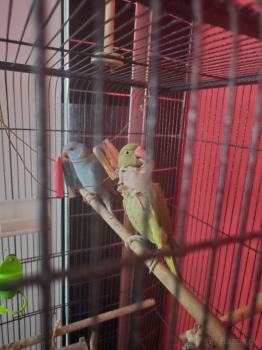 Predám 2 Alexandre malé, len spolu aj z klietkou. Mám i stojan, keď sú vonku. Nemajú ani rok. Sú z dvoch chovov. Cena z klietkou 200€+30€ za ten stojan čo je úplne nový.