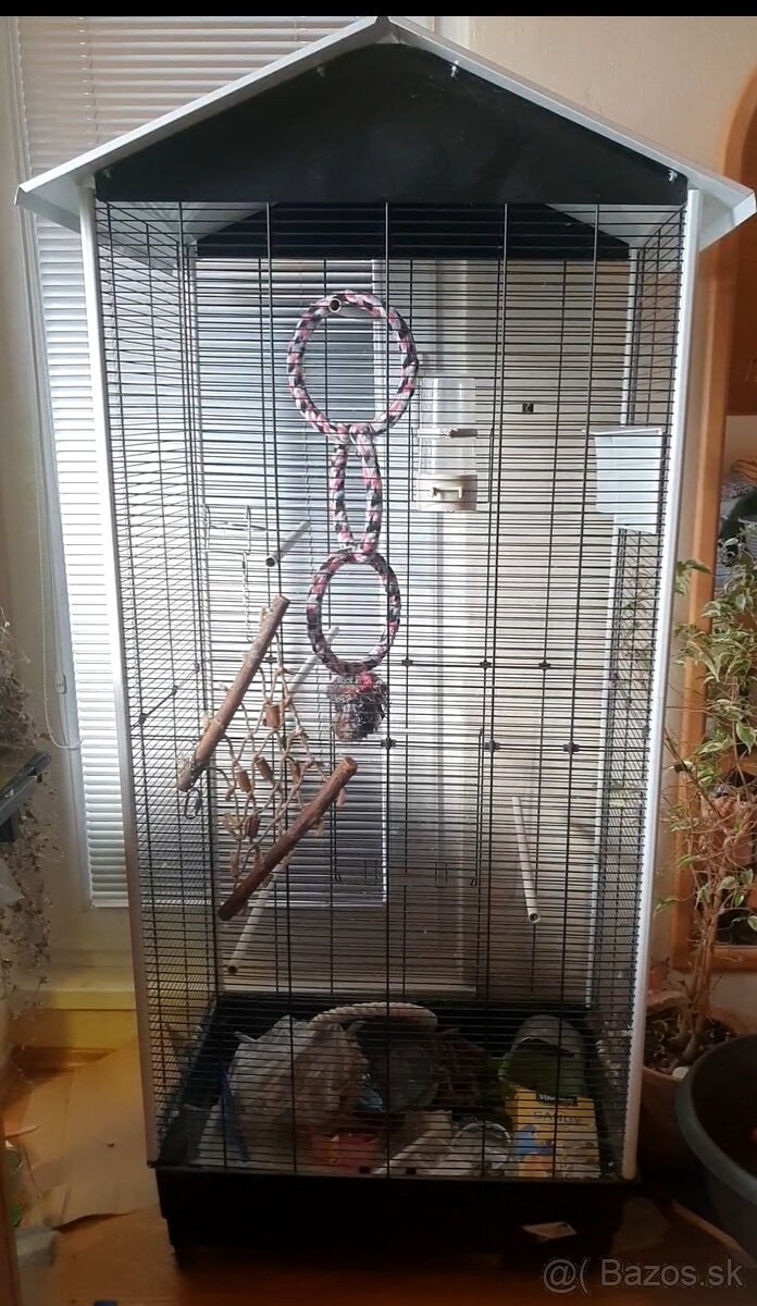 Klietka / voliéra pre väčšie papagáje - [10.3. 2026]Predám používanú klietku Omega III, celková výška cca 150 cm, rozmery klietky 85×55×100. Chýba 1 koliesko, vidieť známky používania. Medzery medzi mriežkami 2cm - nevhodné pre menšie vtáctvo. K tomu nejaké antikorové misky, brúsne bidlá ... Len osobný odber Nová Dubnica!