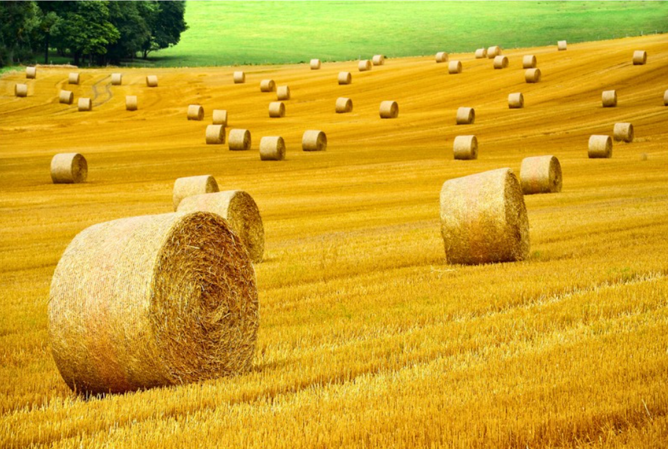 Slama v okrúhlych balíkov