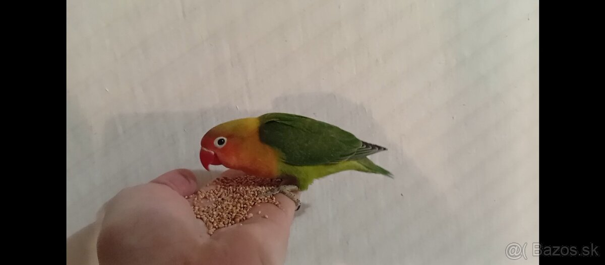 Agapornis zlty - samicka - [25.2. 2026]predam 1 ks agapornisy-vtaciky lasky, krasne spievaju, maju 1,5 roka, samicka ma certifikat, kupovane v superzoo, dovod predaja- prerabka bytu