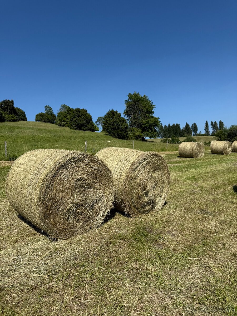 Ponúkam na predaj guľaté balíky sena z podhorských lúk, kosené v okolí Dolného Kubína. Priemer balíka je 120 cm a hmotnosť sa pohybuje v rozmedzí 250–270 kg. Seno je nezapršané a uskladnené v senníku.