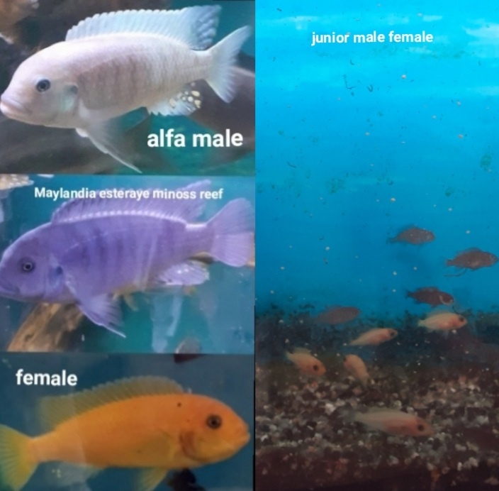 Ide o druh, kde je samec modrý roznych variacií a samica orandžová, hovorí sa tomu pohlavný dimorfizmus. Veľmi zaujímavá cichlida.