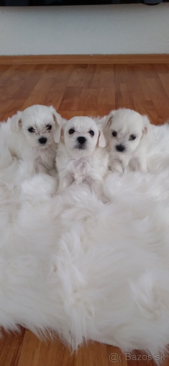 Ponúkame na predaj maltezaciky šteniatka 1psik 2fenky.odber možný 1,2 týždňov. Kŕmené len kvalitnými granulkami špecialne pre šteniatka-Royal canin mini starter. Možná rezervácia.