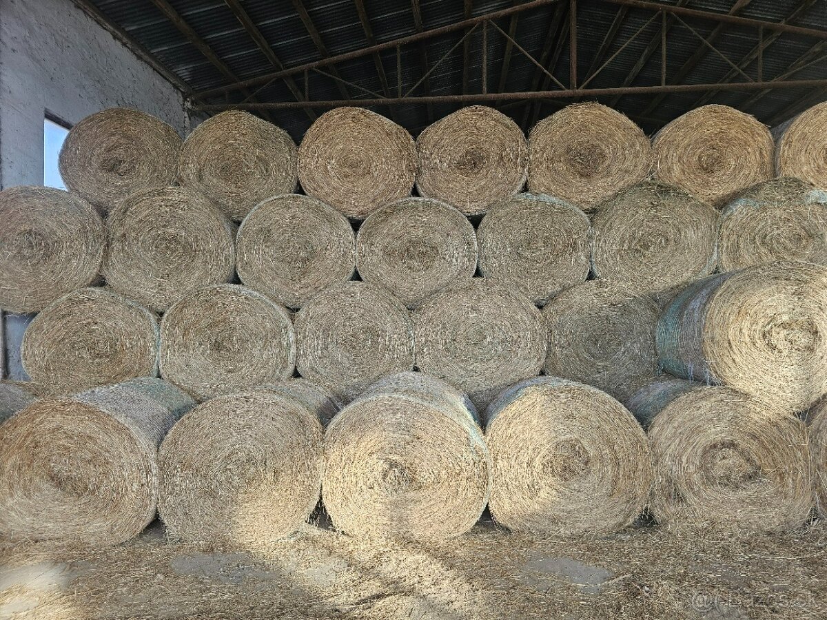 Predám seno - [20.1. 2026]Predám balikované seno v guľatých balíkoch rozmer je 120x135 cm a váhe 300-350kg je balené v sieťke cene je 30e/balík uskladnené v hale.Viem zabezpečiť aj dopravu.