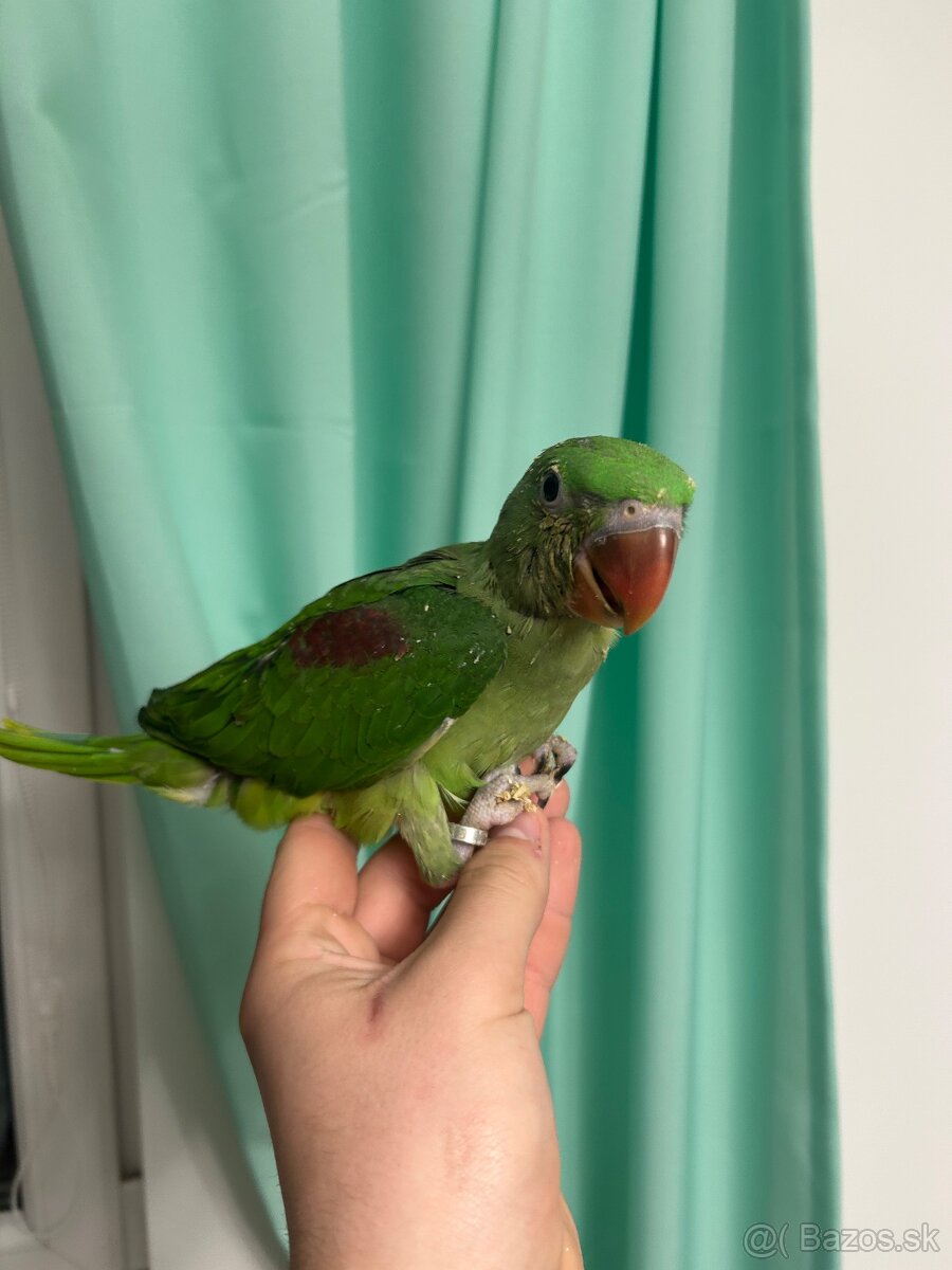 Alexander velky - [26.3. 2026]Predám 4 týždňové mláďa alexander veľký na ručné dokrmovanie zelený neistý na modré. Iba tel.0904200243.