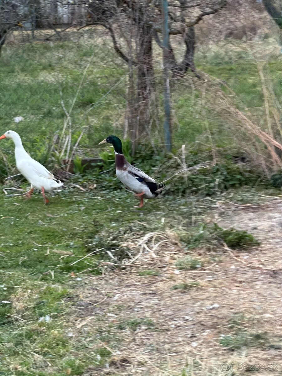 Predám 2 kačery – indických bežcov, vek cca 6–mesiacov, zdraví a vitálni. Jeden hnedý (divá farba), jeden biely. Odchovaní od malička, zvyknutí na dvor a voľný výbeh. Výborní na likvidáciu slimákov v záhrade.