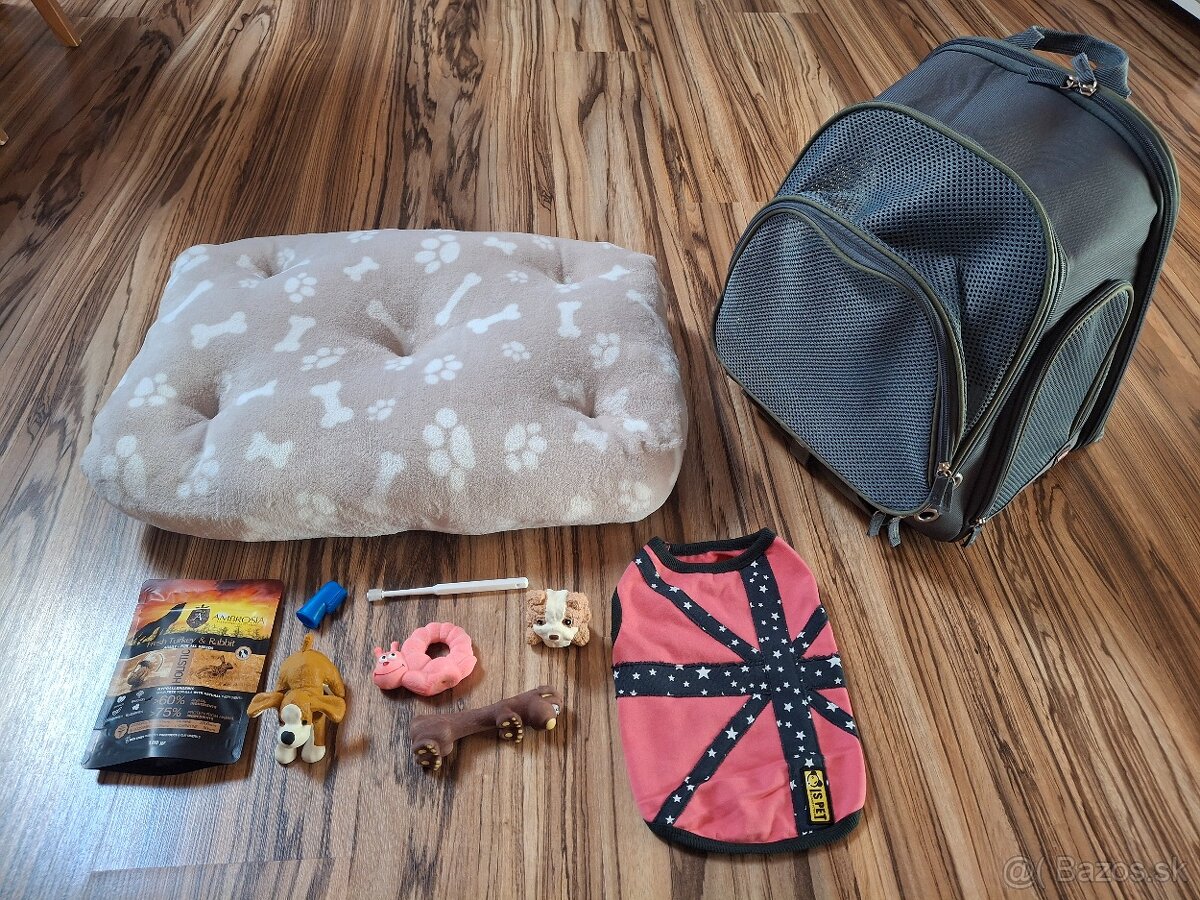 Predám veci pre psíka, ako ruksak, pelech, hračky, oblečenie...