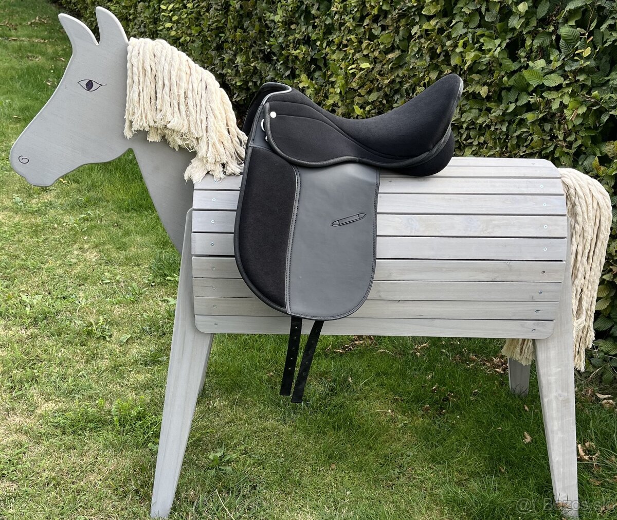 Anglické všestranné sedlo ze syntetických materiálů, černé, pod bočnicemi v přední části opěrky na suchý zip, vyměnitelné. Měkký a pohodlný sed z paměťové pěny. Délka sedu 17,5". Přední "D" kroužky pro připevnění poprsníku, nebo martingalu. Bezpečnostní třmenové zámky. Velice snadná údžba, trvanlivé a odolné použité materiály. Váha sedla do třech kilogramů. Cena 99.0€. Ceny dopravy/doručení: DHL na adresu platbou na dobírku/14.0€ nebo platbou převodem, popř.PayPal/10.0€.