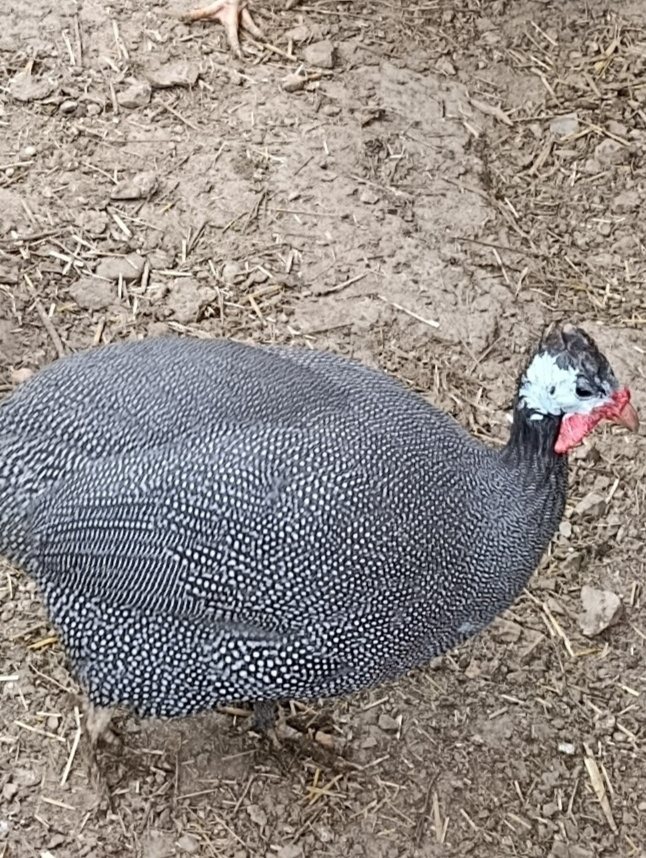 Perlička bodkovaná - [17.2. 2026]Ponúkam na predaj/ výmenu 3ks kohútov perličky bodkovanej. Vyliahnuté 17.júna - majú 8 mesiacov. Možná aj výmena 1ks kohúta za iného kohúta alebo sliepku perličky, ideálne sivé alebo biele.