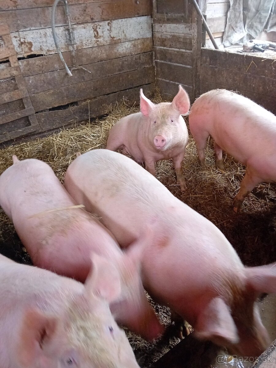 Vykrmena prasata - [10.3. 2026]LandrasxBU. Masovy typ. Vaha od 100kg. Cena 2,20€/kg. Jsme okres Vsetin 40km od SK hranic. Pouze volat.