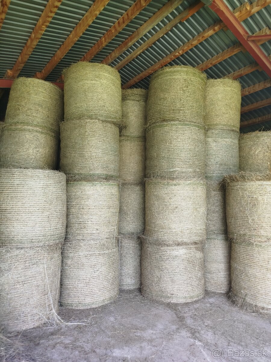 Predám seno - [26.3. 2026]Predám balikované seno v guľatých balíkoch rozmer je 120x135 cm a váhe 300-350kg je balené v sieťke cene je 30e/balík uskladnené v hale.Viem zabezpečiť aj dopravu.
