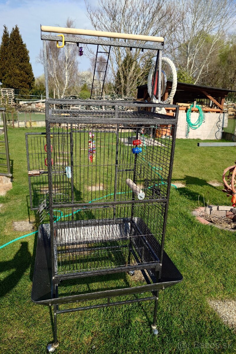 Predám používanú klietku pre papagáje (väčšie), je dezinfikovana, kopec hraciek, má drobné nedostatky vid foto, šikovný majiteľ si to opraví. Doplním cca 10kg zrno Versele Laga Prestige, granulky, antioxidant a vitamíny vid foto. Osobný odber.