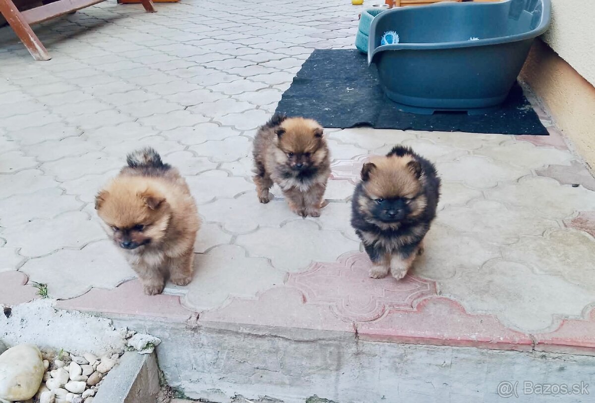 Predám 6-týždňové 3 šteniatka, konkrétne 2 psíky a 1 fenka - nemecký špic pomeranian. Všetky sú zaočkované, odčervené s preukazom.