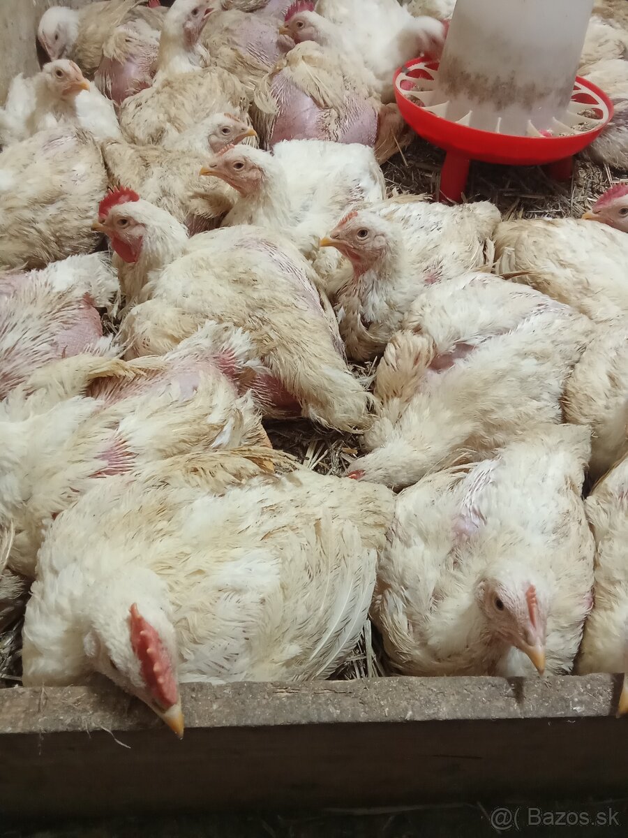 Predám brojlerove kurčatá cena za kg 4,5€ kŕmené vlastnou zmesou sú o váhe 2.5 kg a viac pri záujme treba nahlásiť. Aspoň 2 dní dopredu kurčatá budú očistené a zabalené