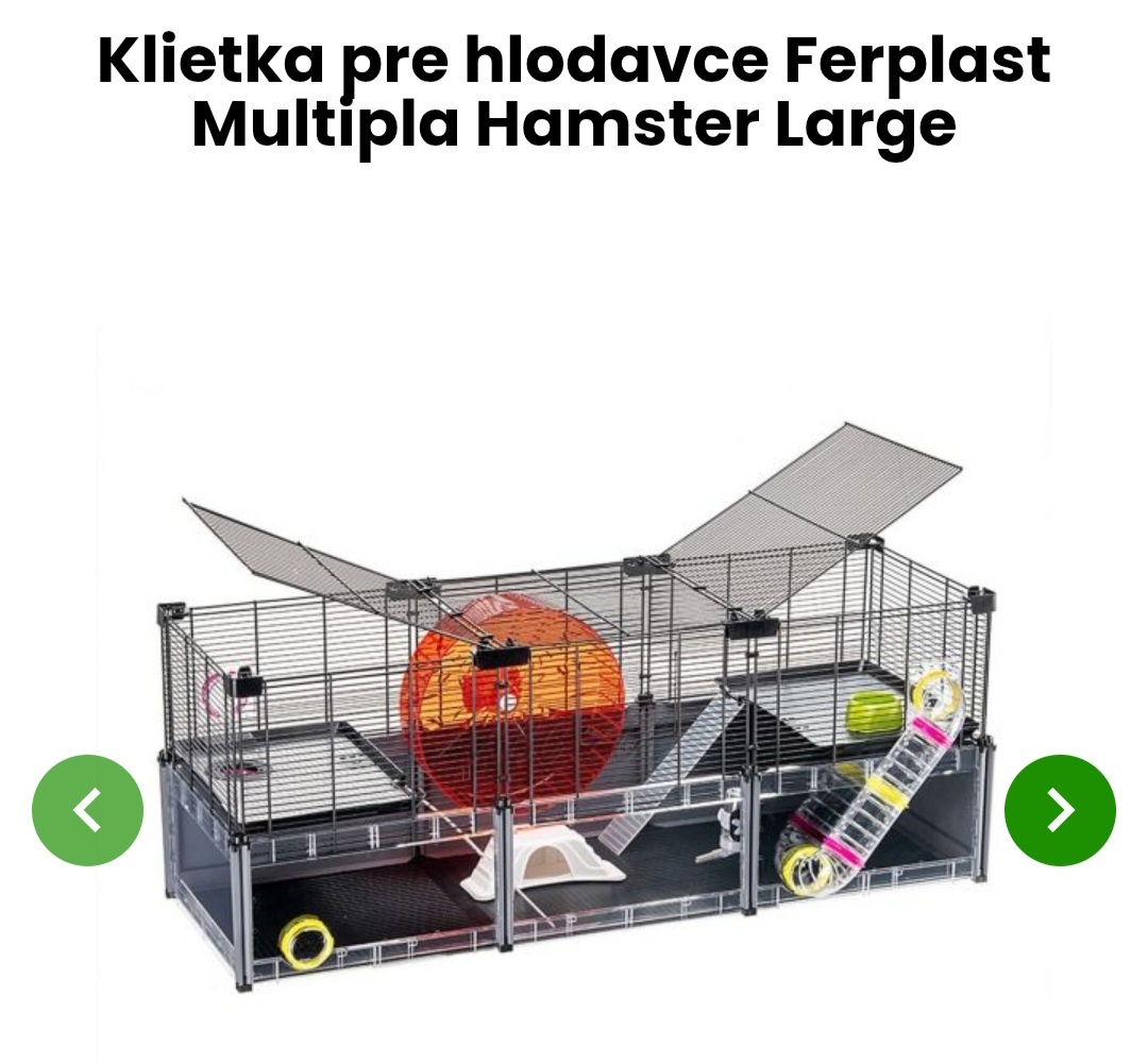 Klietka sa predáva s vybavením tak ako je na foto, 2x domček, 2x napájatko, 2x senník, 6x miska na zeleninu/granule/snacky, 1x mostík na výbeh z klietky, 1x lopatka.