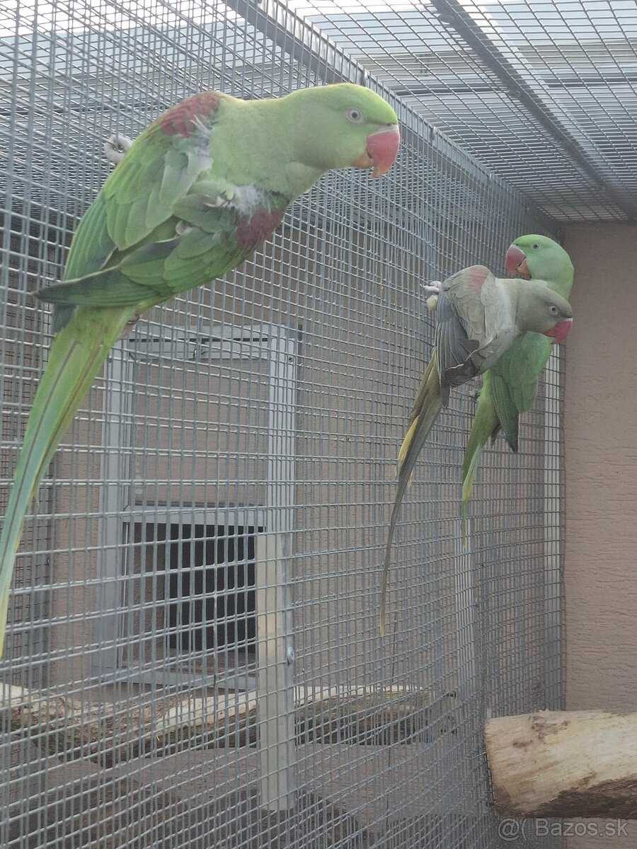 Ponúkam na predaj samicu - samca alexandra velkého v mutácií BRONZ // modré.Maju pevný krúžok 2025 testy DNA a PBFD.