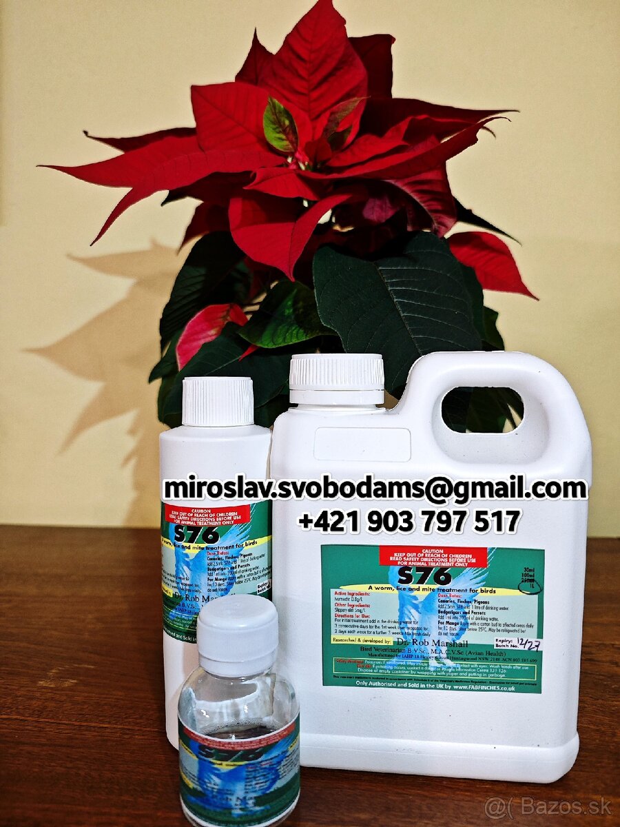 Ponúkam originálny prípravok S76 – osvedčené riešenie na odčervenie a ochranu vtáctva pred vnútornými a vonkajšími parazitmi (roztoče pľúcnych vakov, peria, krvi, vápenka a pod.).
