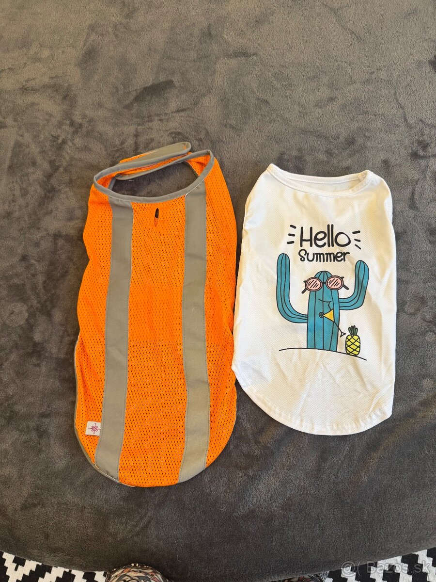 Predam nove nepouzivane oblecenie pre psika. Biele je lahke tielko strednej velkosti. Orandzove je reflexna vesta L XL. Vyborne sa osvedci pri vecernych prechadzkach. Cena za obe 7 . Posielam na dobierku