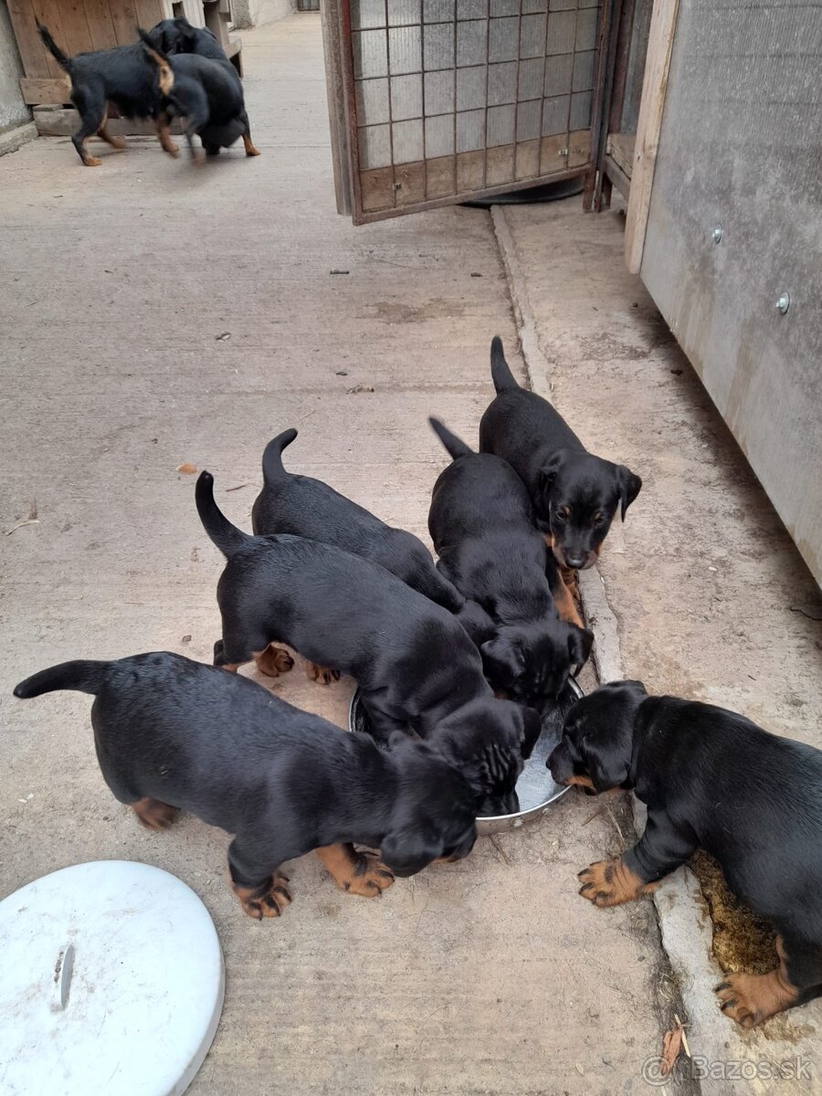 Ponukam na predaj steniatka Jagdterriera bez PP, 4 psiky a 3 sucky. Zaockovane,odcervene,zacipovane,mozne k odberu.