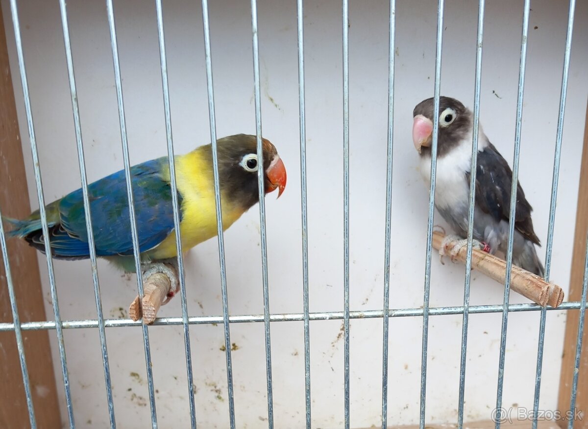 Ponúkam k odberu mladý harmonizujúci pár agapornisov personatus. Samec V violet D tyrkys (fialový tyrkys), samica DD modrý (mauve), obaja krúžkovaní 10/25, momentálne preperujú, fotky aktuálne, tel.: 0911226852.